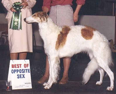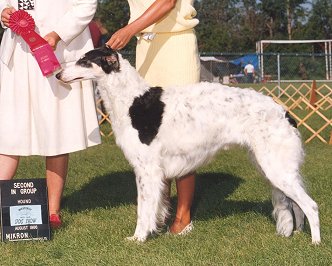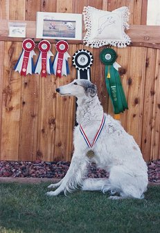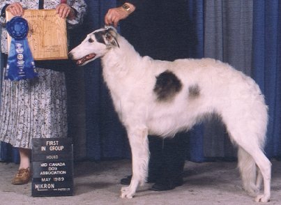 Kayla garnered many wins, Specialties, Groups, Sweepstakes, and High In Trials. She was #1 Borzoi bitch in Canada for 1989.